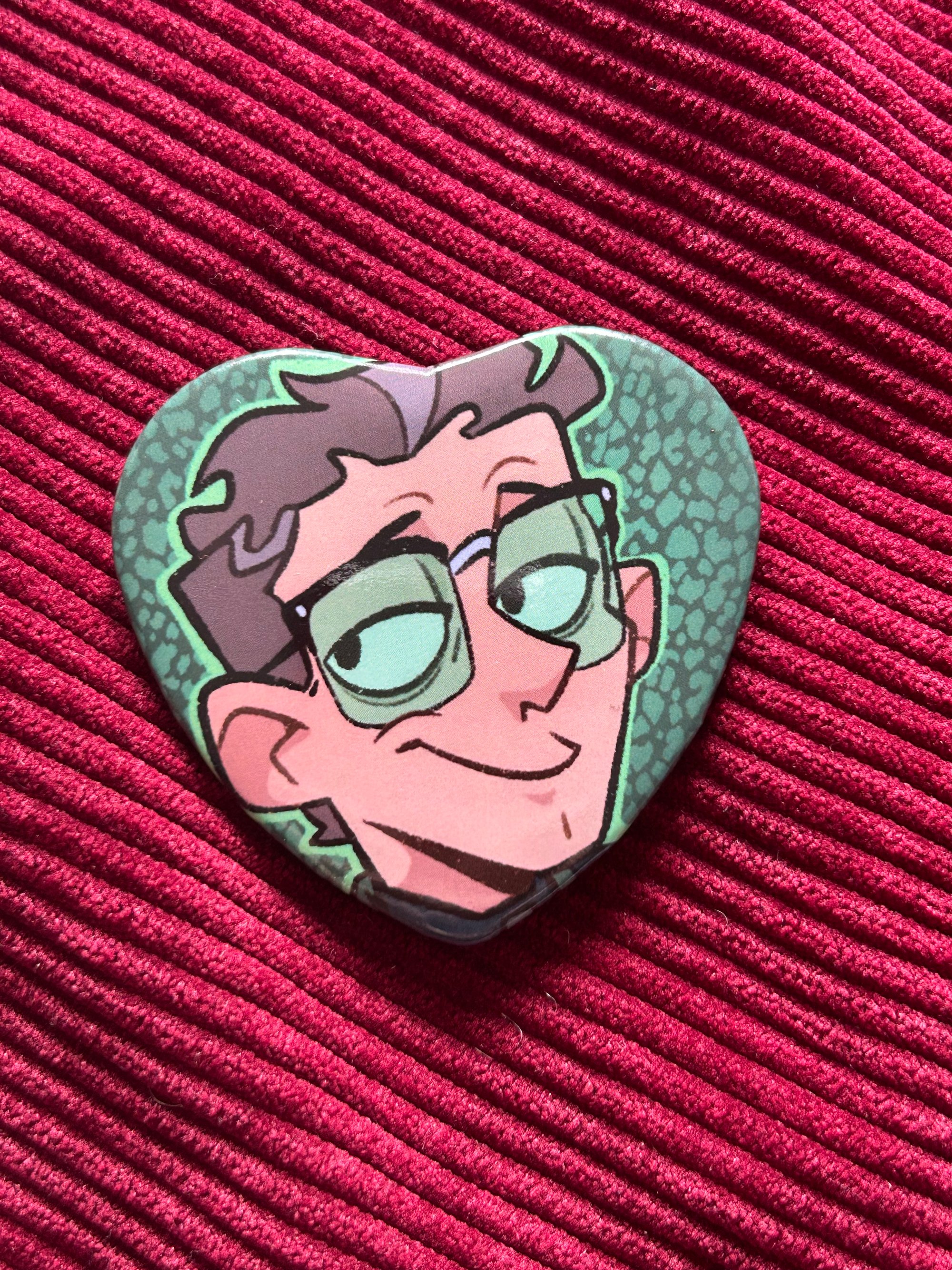 Approx. 2.5” heart-shaped pinback button (safety pin backing) Please consider the above dimensions and material before purchasing. Thank you!